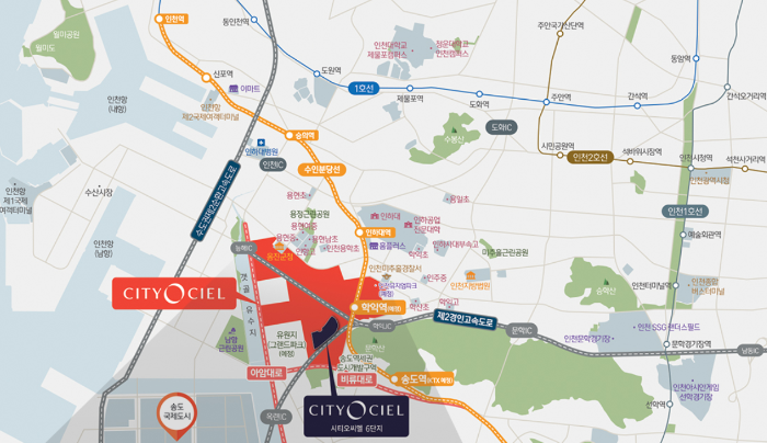 쾌속교통망 : 수인분당선 학익역(예정), KTX 송도역(예정), 등의 대중교통과