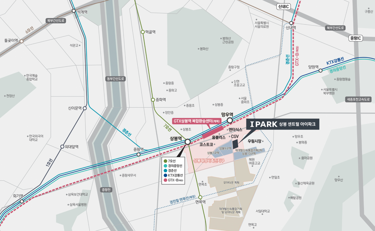 또한 7호선 상봉역도 도보 15분 내 접근 가능해 서울 전역 이동이 가능합니다.