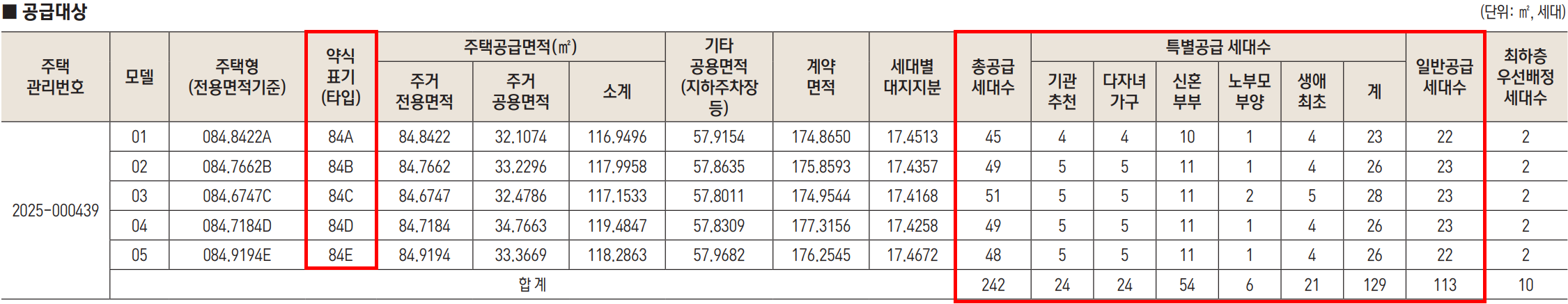 | 타입 | 세대 수 | 분양가(최고가 기준) |