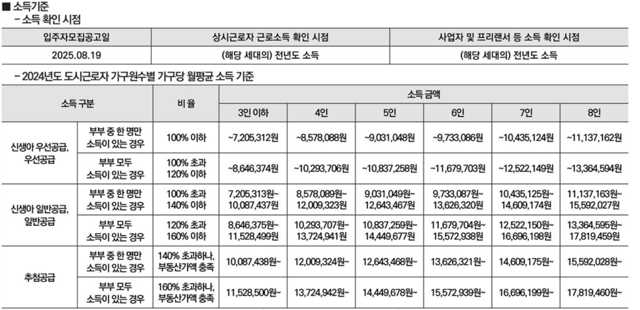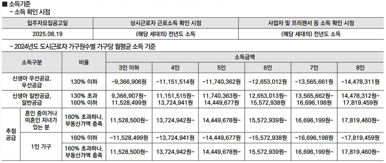 • 「생애최초 주택 특별공급 운용지침」에서 정하는 소득기준 또는 자산기준 충족