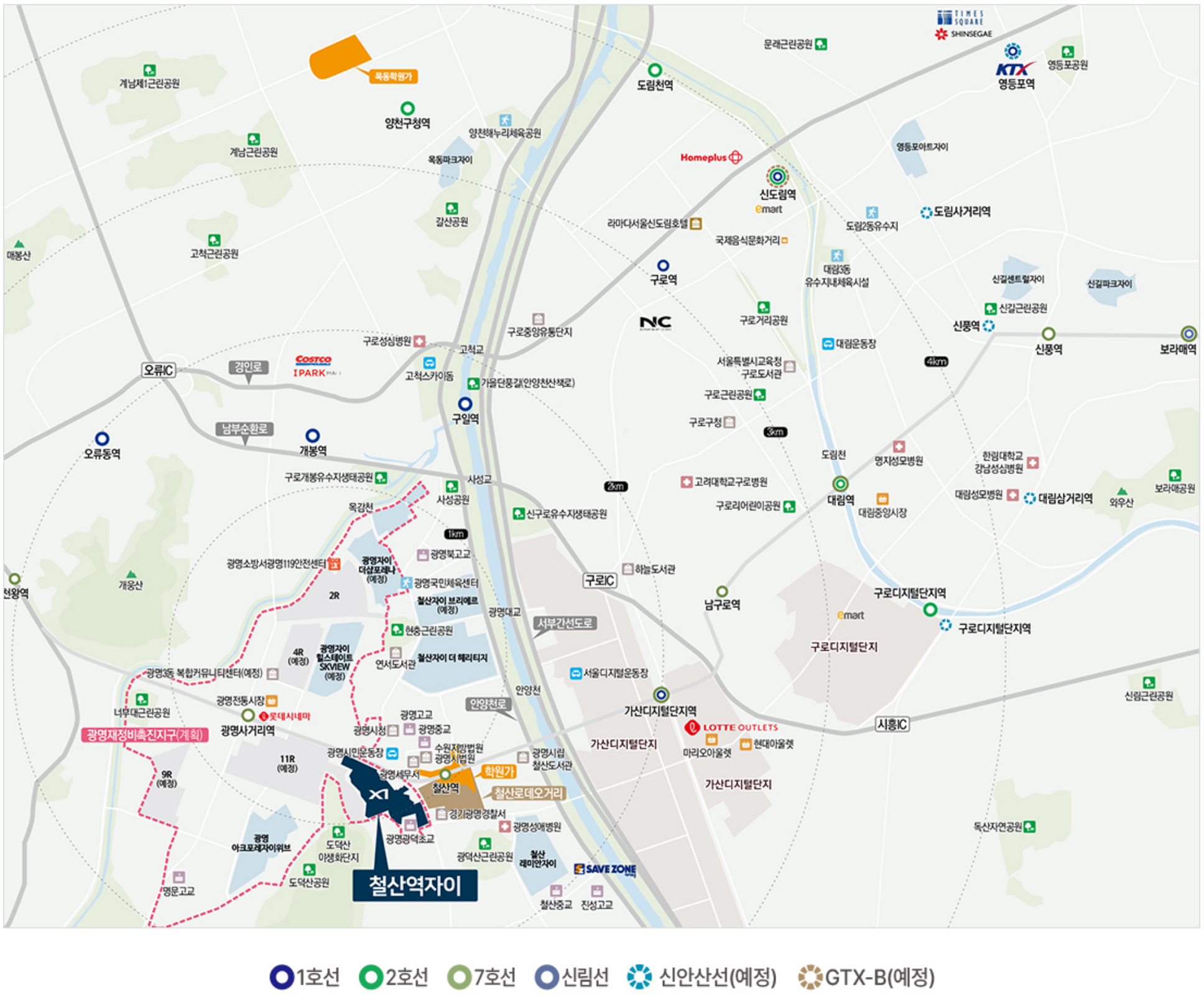 - 생활편의: 철산 로데오상권, 중앙시장, 광명시청, 대형병원·은행·관공서 밀집