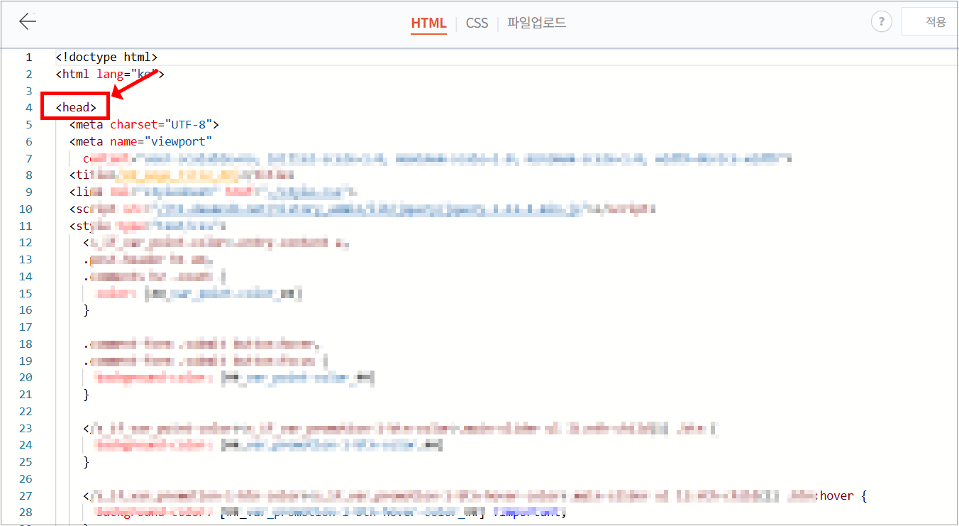 3. <head> 태그 안에 광고 코드 붙여넣기