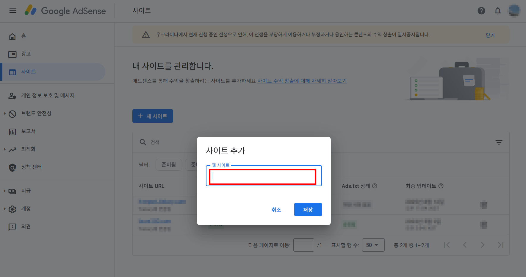 2. 구글 애드센스에 티스토리 블로그 연결
