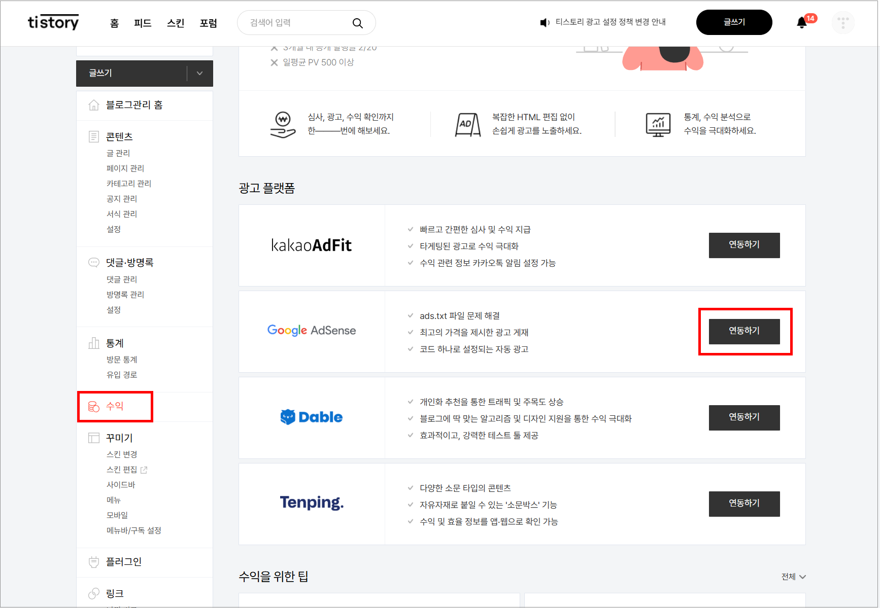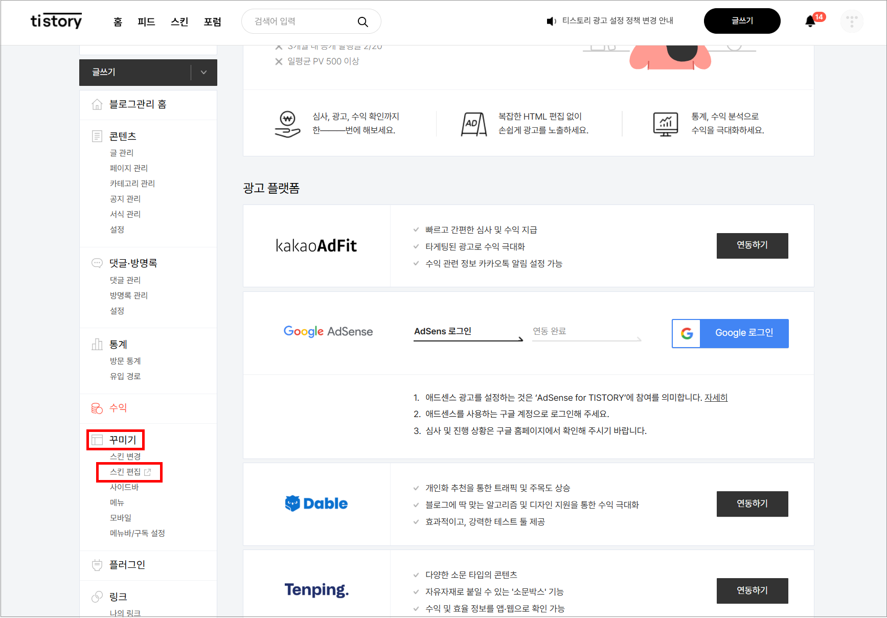 3. 티스토리 블로그에 애드센스 코드 삽입