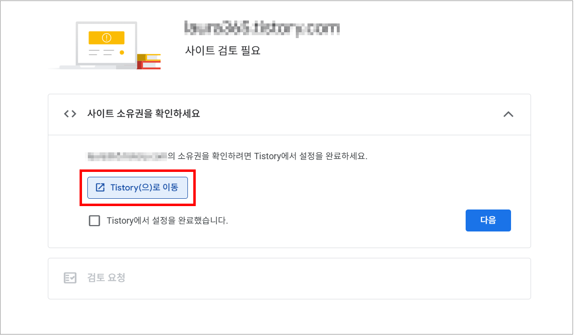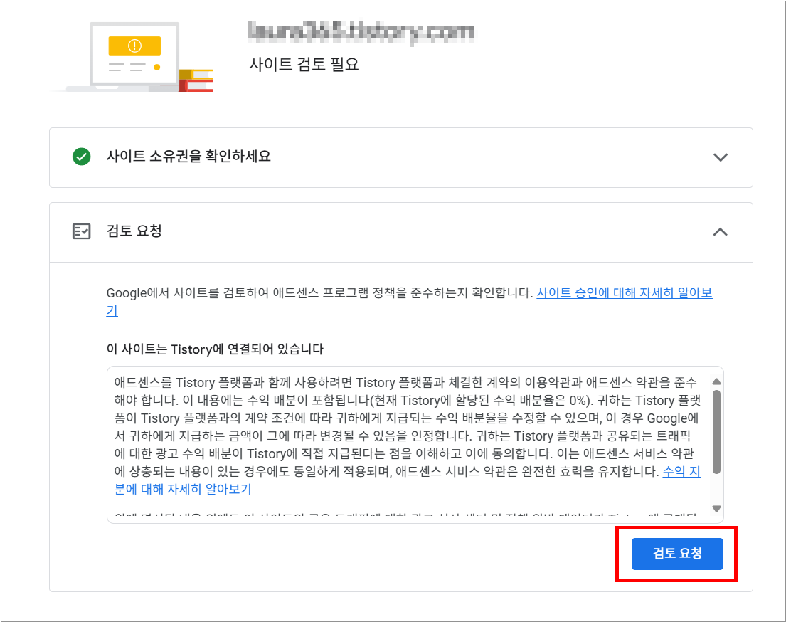 - myblog.tistory.com 도 사용 가능하지만, 개인 도메인 연결 시 신뢰도와 승인 확률 상승