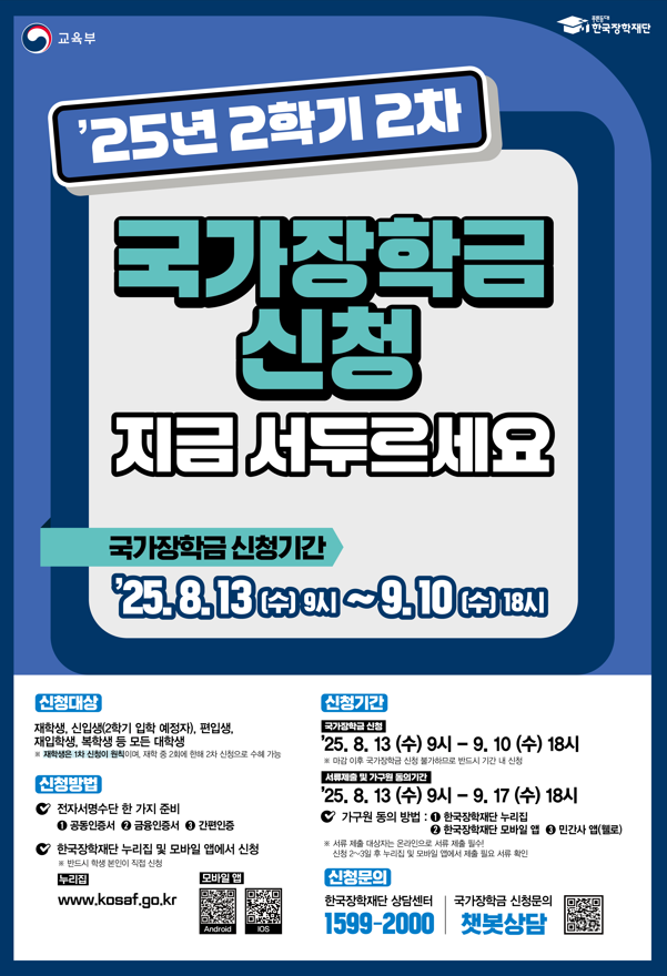 ☎ 문의: 한국장학재단 콜센터 1599-2000
